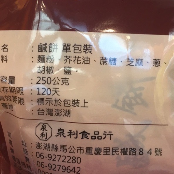 #澎湖名產 #泉利鹹餅 #單片裝 #葷食