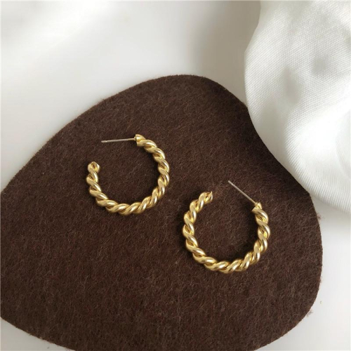 台灣現貨⚇銀針⚇2.9cm 歐美金屬感耳圈麻花耳釘C字耳環 Justlikepig就愛豬飾品🐷