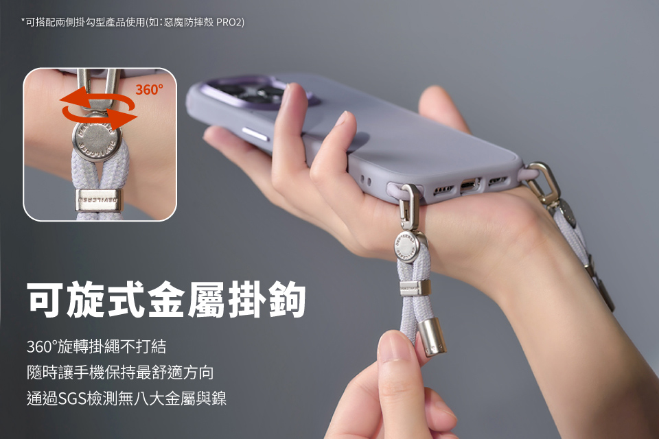 ★可旋式金屬掛鉤:360度旋轉掛繩不打結,隨時讓手機保持最舒適方向