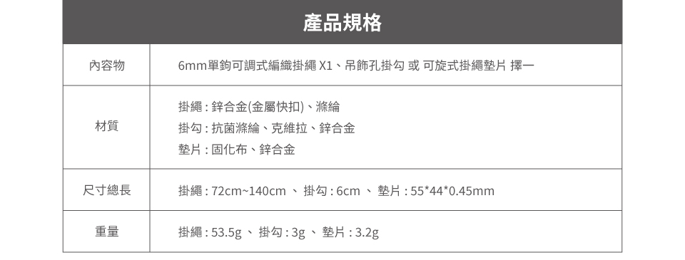 產品名稱:Devilcase 6mm可調式單鉤編織掛繩