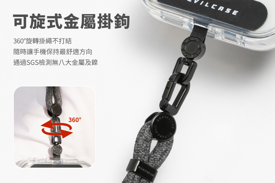 ★可旋式金屬掛鉤:360度旋轉掛繩不打結,隨時讓手機保持最舒適方向