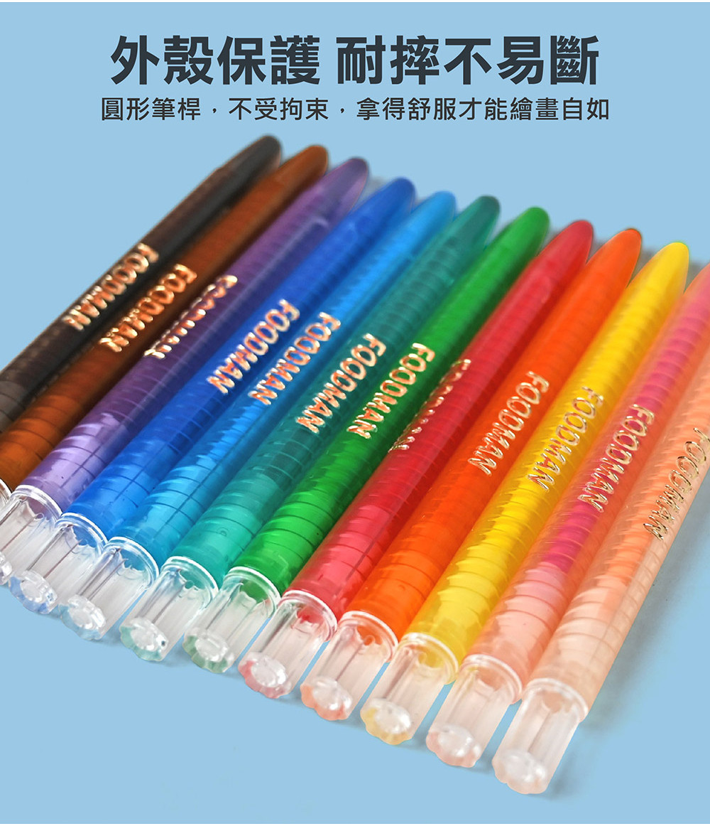 筆身耐摔好抓握,不沾手不掉屑,不再為蠟筆斷裂而苦惱!