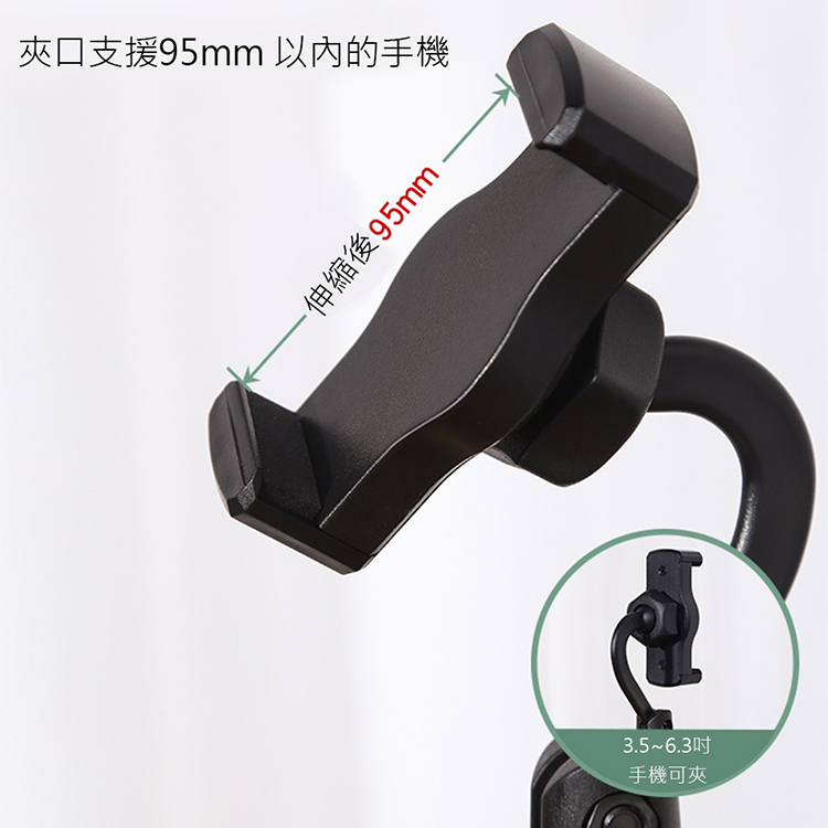 ◎角度可伸縮手機支架,夾口寬泛,廣泛適用3.5~6.3吋內手機