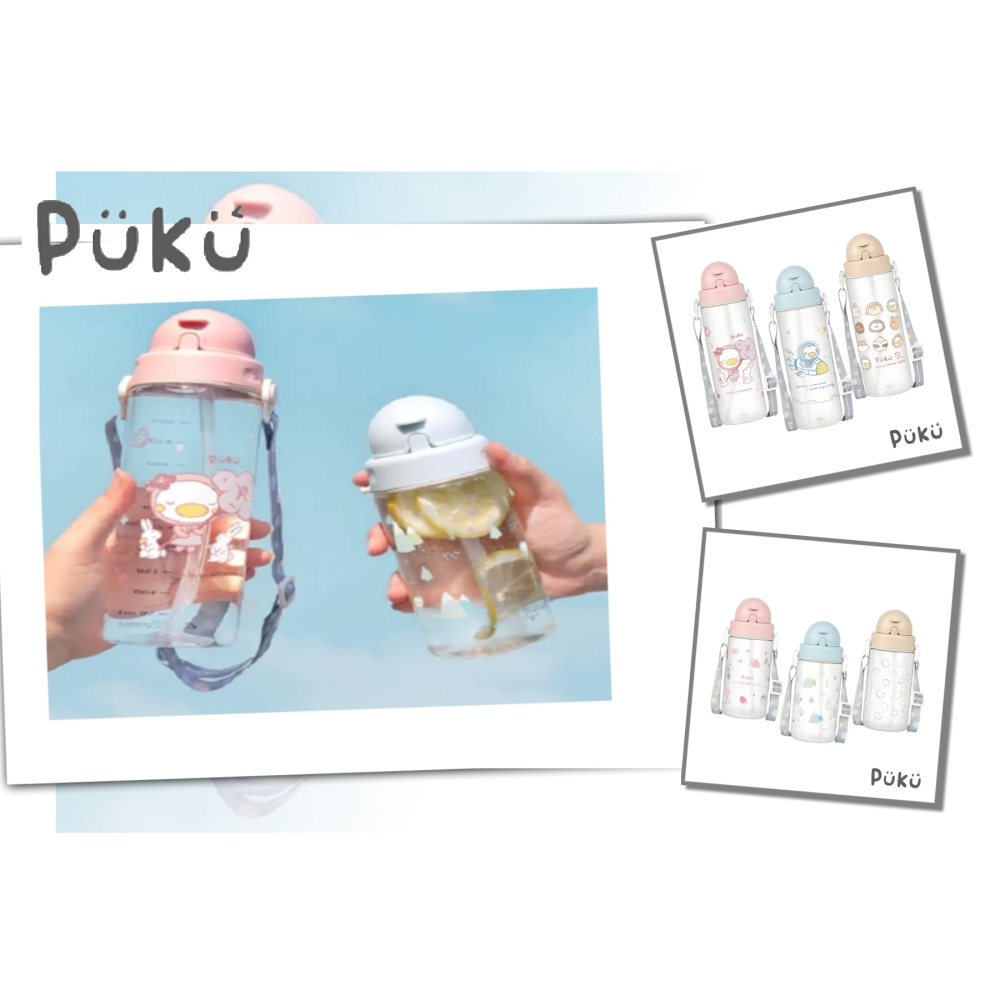 PUKU 藍色企鵝 飄飄奶蓋Tritan吸管隨身水瓶 吸管水壺 330ml / 500ml P14624