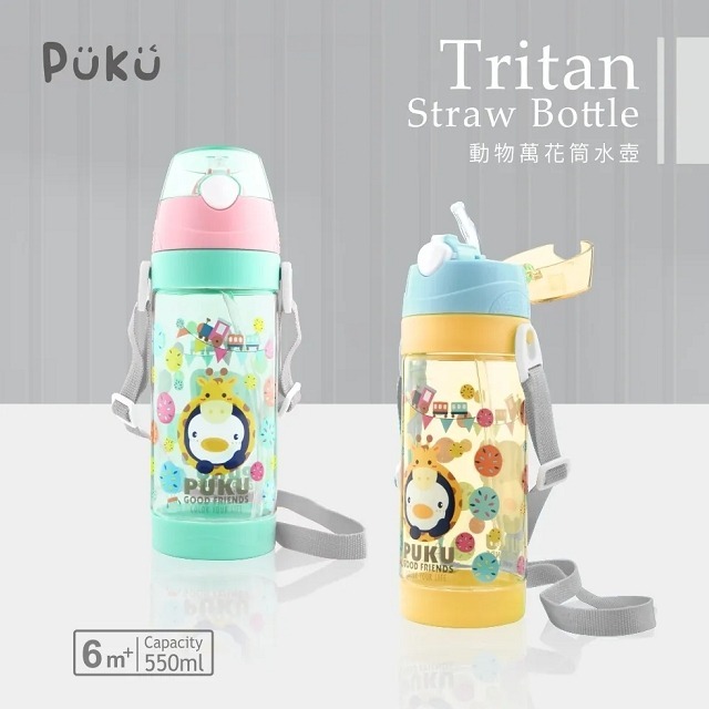 PUKU 藍色企鵝 動物萬花筒Tritan水壺 揹帶水壺 彈蓋水壺 550ml p14728