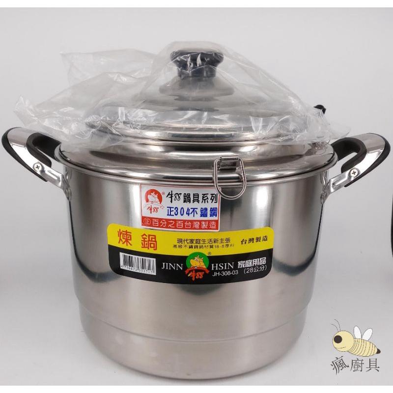 【瘋廚具】附發票 台灣製造 牛88 304#不鏽鋼28cm(四件式)/ 32cm(五件式)煉鍋 雞湯補鍋 雞精