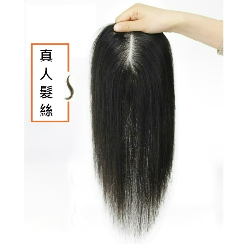 頭頂髮片 真髮 全手織-頭頂補髮片 遮白髮 可自由分線 無痕 輕薄 (20cm)【黑二髮品】TGM