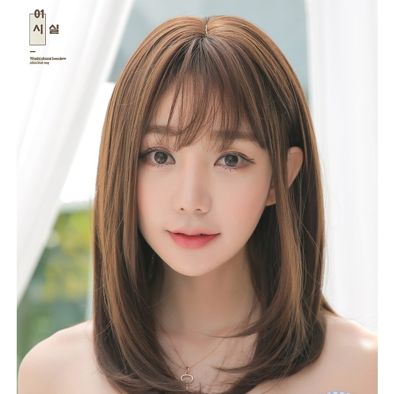整頂假髮 假髮 空氣瀏海 高溫絲 鎖骨髮-中長髮型 直髮 cosplay 髮套 逼真【黑二髮品】OTAA