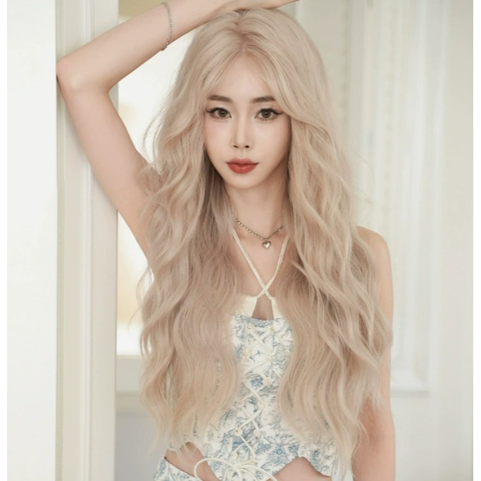 女 整頂假髮 高溫絲 長捲髮-前額蕾絲 cosplay 髮套 改變髮型 透氣內網 【黑二髮品】OTAZ4
