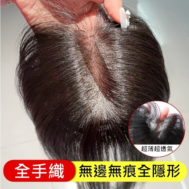 真髮髮片 頭頂補髮 全手織內網 - 逼真透氣 蓬鬆頭頂 自然貼合 配戴更舒適【黑二髮品】TAZ19