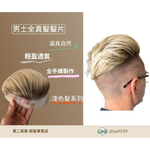 男生頭頂髮片 全真髮 假髮片-前額蕾絲更隱形 金色系髮色 潮色髮 可自行染色【黑二髮品】TLA