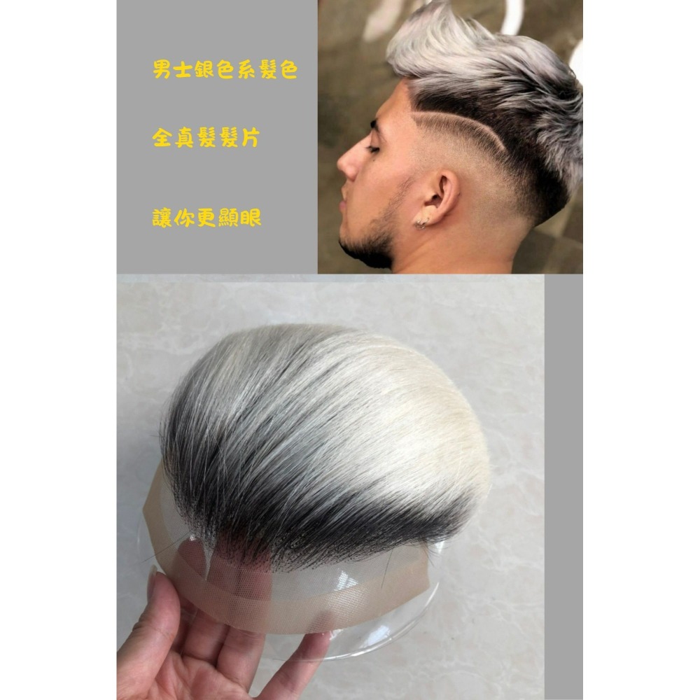 男生髮片 真髮髮片 頭頂假髮片 黏貼假髮 - 前額蕾絲 銀色系髮色 更亮眼 【黑二髮品】TLB