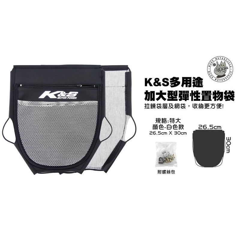 韋德機車精品 K&S KISS 部品 機車 加大型彈性置物袋 收納袋 收納包 置物包 置物袋 車廂內袋 特大 白