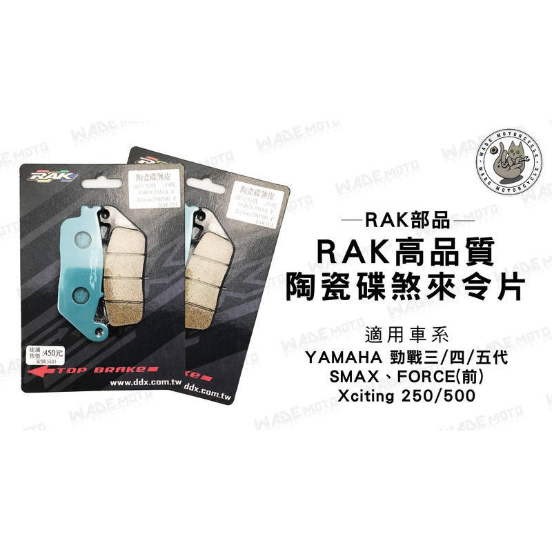 韋德機車精品 RAK 陶瓷 來令片 煞車皮 碟皮 適用新勁戰 三 四 五 代戰 FORCE SMAX