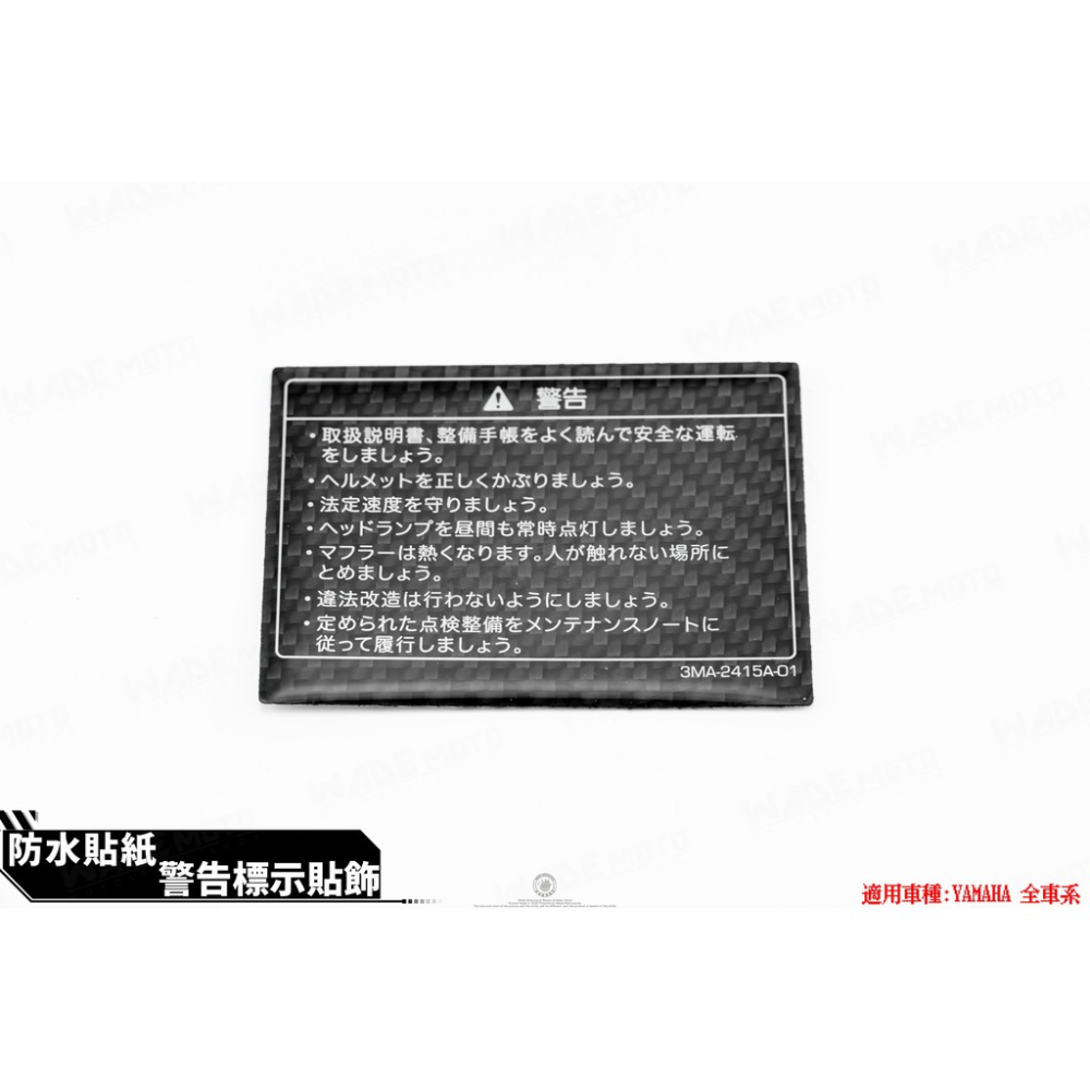 韋德機車精品 卡夢 警告貼 碳纖維卡夢 告示貼 車身貼 貼片 警告標語 警告標誌 不限定車款