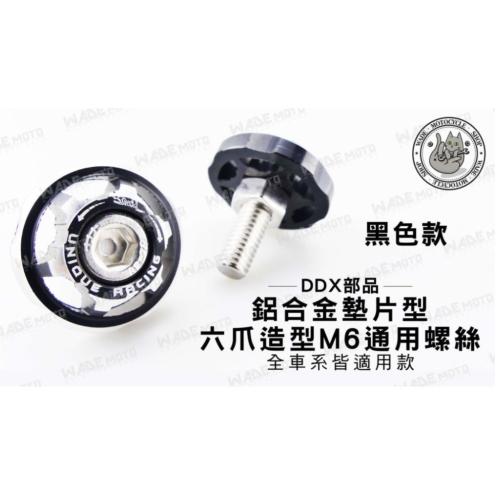 韋德機車精品 DDX部品 鋁合金 墊片型 六爪造型 6MM 大牌 車牌 牌框 M6 螺絲 造型螺絲 適用 全車系 黑色款