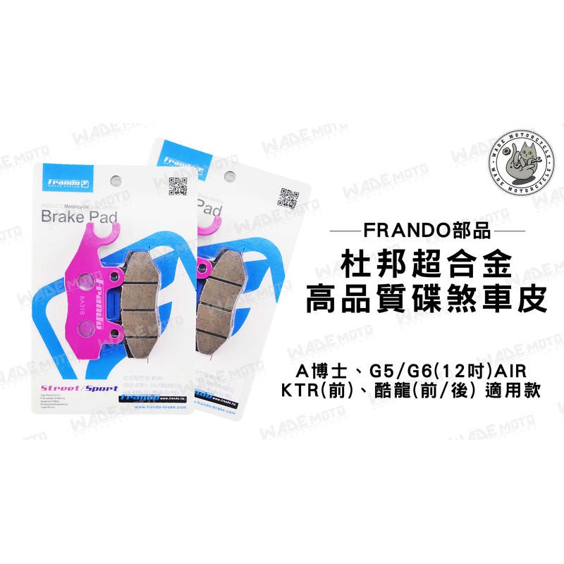 韋德機車精品 Frando 杜邦超合金 煞車皮 來令片 適用車種 A博士 G5 G6 AIR KTR 酷龍