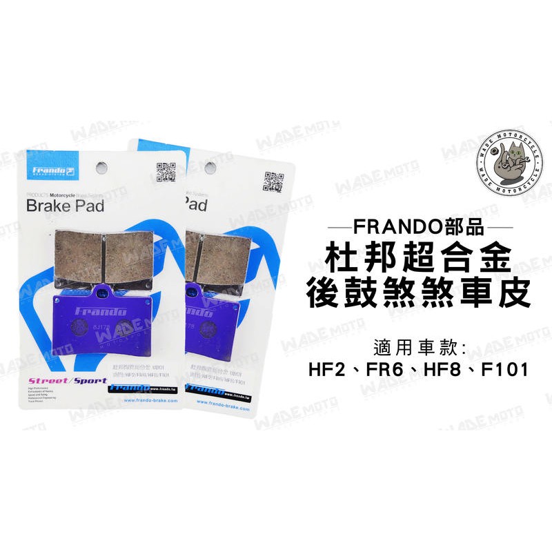 韋德機車精品 FRANDO部品 杜邦 陶瓷 超合金 煞車皮 來令片 HF2 FR6 HF8 F101