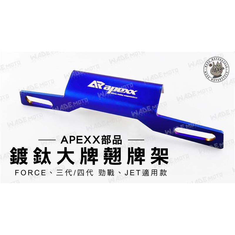 韋德機車精品 APEXX部品 鍍鈦 大牌 翹牌架 車牌架 適用車種 FORCE 勁戰 三代 四代 JET