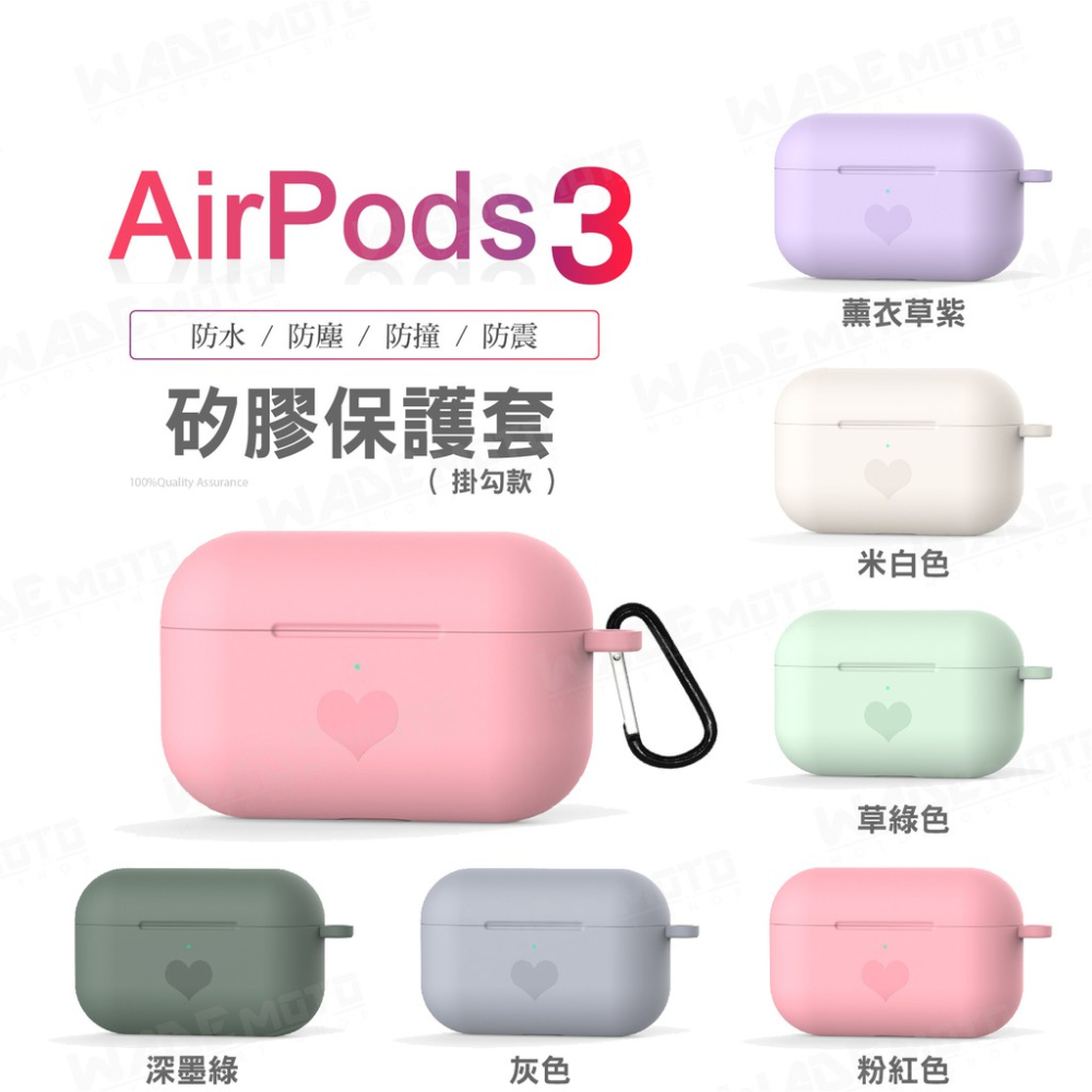 韋德機車精品 矽膠保護套 含扣 AirPods3 粉紅色 無線耳機保護套 保護殼 矽膠 便利充電孔設計 airpods