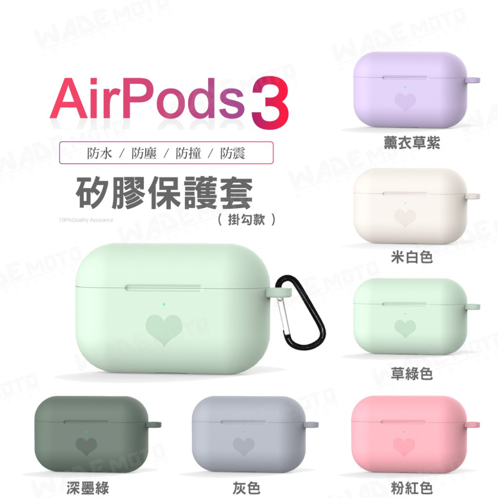 韋德機車精品 矽膠保護套 含扣 AirPods3 草綠色 無線耳機保護套 保護殼 矽膠 便利充電孔設計 airpods
