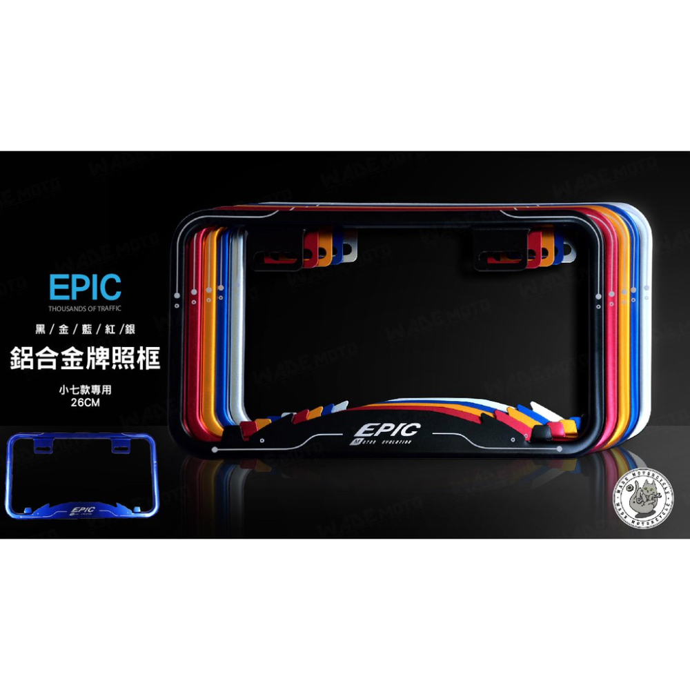韋德機車精品 EPIC 新型 牌框 鋁合金 車牌框 牌照框 新款車牌框 小七 小7 碼車牌 26CM 藍