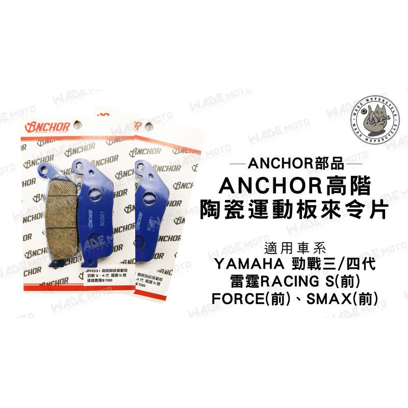 韋德機車精品 Anchor 陶瓷來令片 適用車種 三 四代 勁戰 雷霆 FORCE SMAX