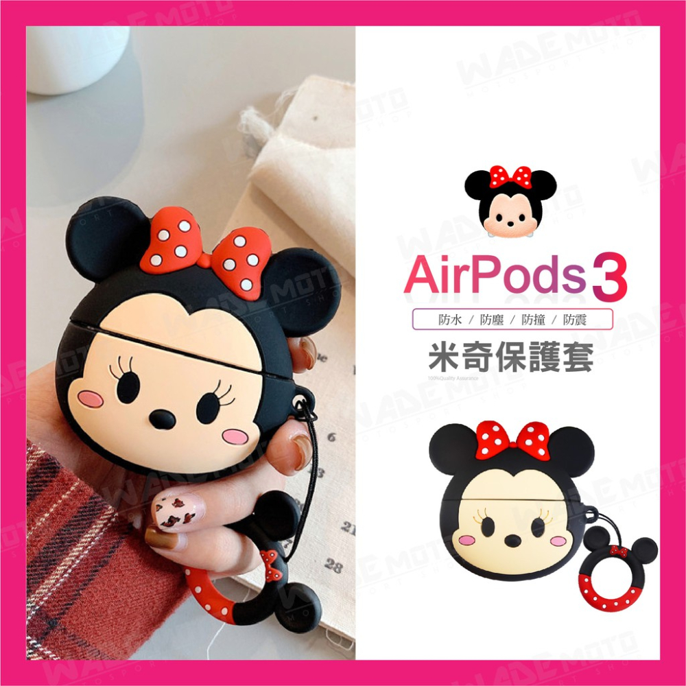 韋德機車精品 卡通款 AirPods3 無線耳機保護套 米妮款 保護殼 矽膠 便利充電孔設計 airpods