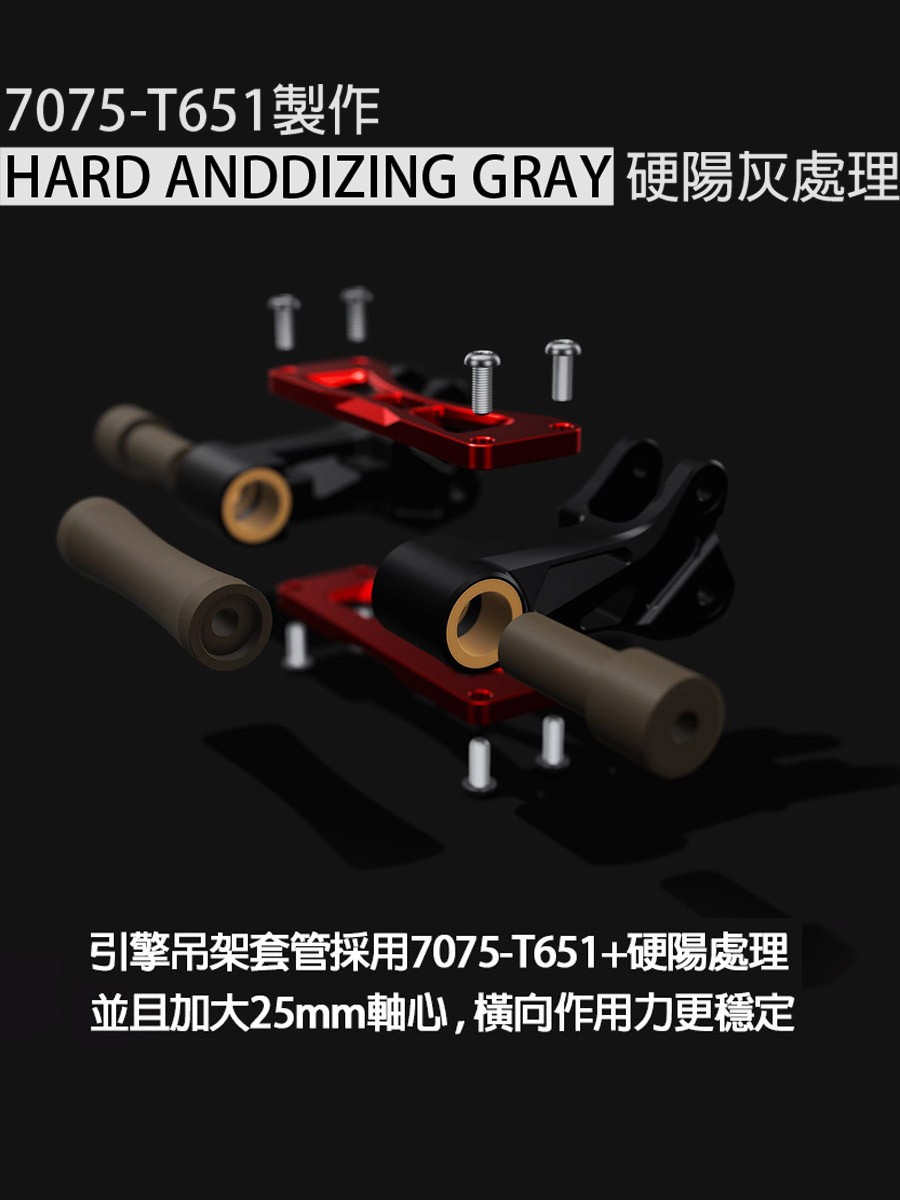 引擎吊架套筒採7075-T651並以25MM加大軸心製作加上硬陽