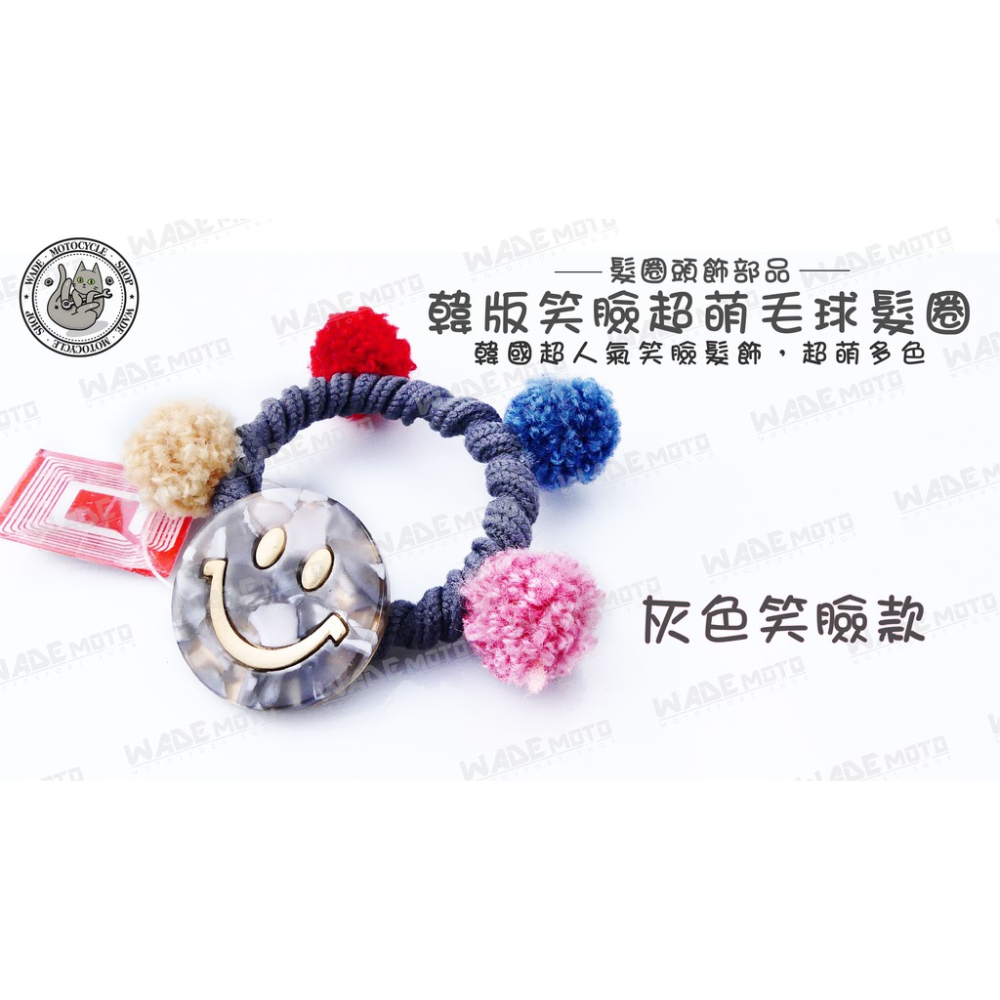 韋德機車精品 髮圈頭飾部品 韓版 笑臉超萌毛球 髮圈 髮帶 頭飾 灰色笑臉款