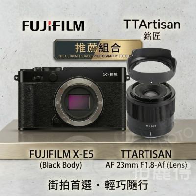 打造您專屬的終極 EDC (Everyday Carry) 攝影體驗!追求極致輕巧與純粹攝影體驗的完美組合!街拍靈魂的完美結合!當極簡美學的 Fujifilm X-E5 黑色機身 遇上 TTArtisan 銘匠 AF 23mm F1.8 大光圈鏡頭,便誕生了最強的人文攝影工具。23mm 的焦段提供了等效約 35mm 的黃金視角,正是街頭攝影、紀實攝影的標配視角。配合 F1.8 超大光圈,即便在微光環境下也能捕捉純淨、富有層次感的影像。本組合機身享有原廠兩年保固,讓您在探索城市的每個角落時,都能無後顧之憂!