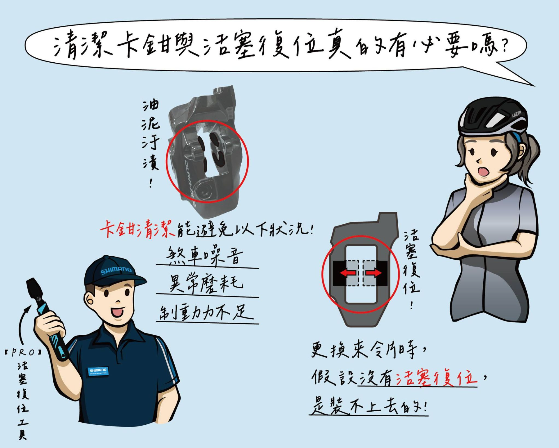 1.裝之前要先把卡鉗活塞復位,沒復位活塞 新的來令片是裝不回去的,可用軟材質(如塑膠挖胎棒)慢慢推回去底部(推太快活塞容易歪而進空氣造成手感不佳喔),裝好後按壓煞車檢查卡鉗是否有置中(置中很重要)或是活塞只跑單邊,若沒置中會噌碟需重新調整卡鉗位置。卡鉗置中調整很耗時累人,若是活塞只出來單邊更會不管怎麼調煞車都會有聲音,沒耐性的建議你花點錢請車店安裝調整比較好喔。