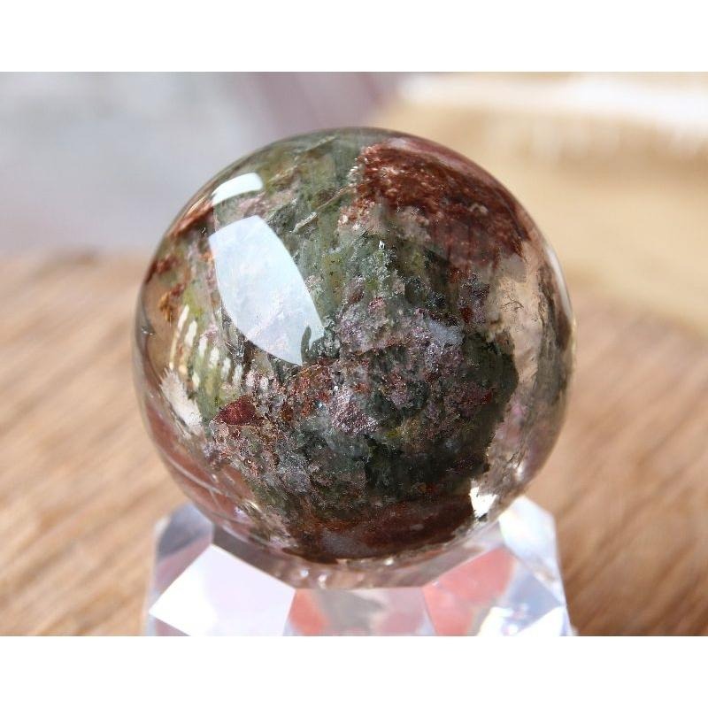 近玻璃體清透、天然意象綠幽靈多彩幽靈水晶球,直徑42mm,重103克-湧翠坊天然水晶