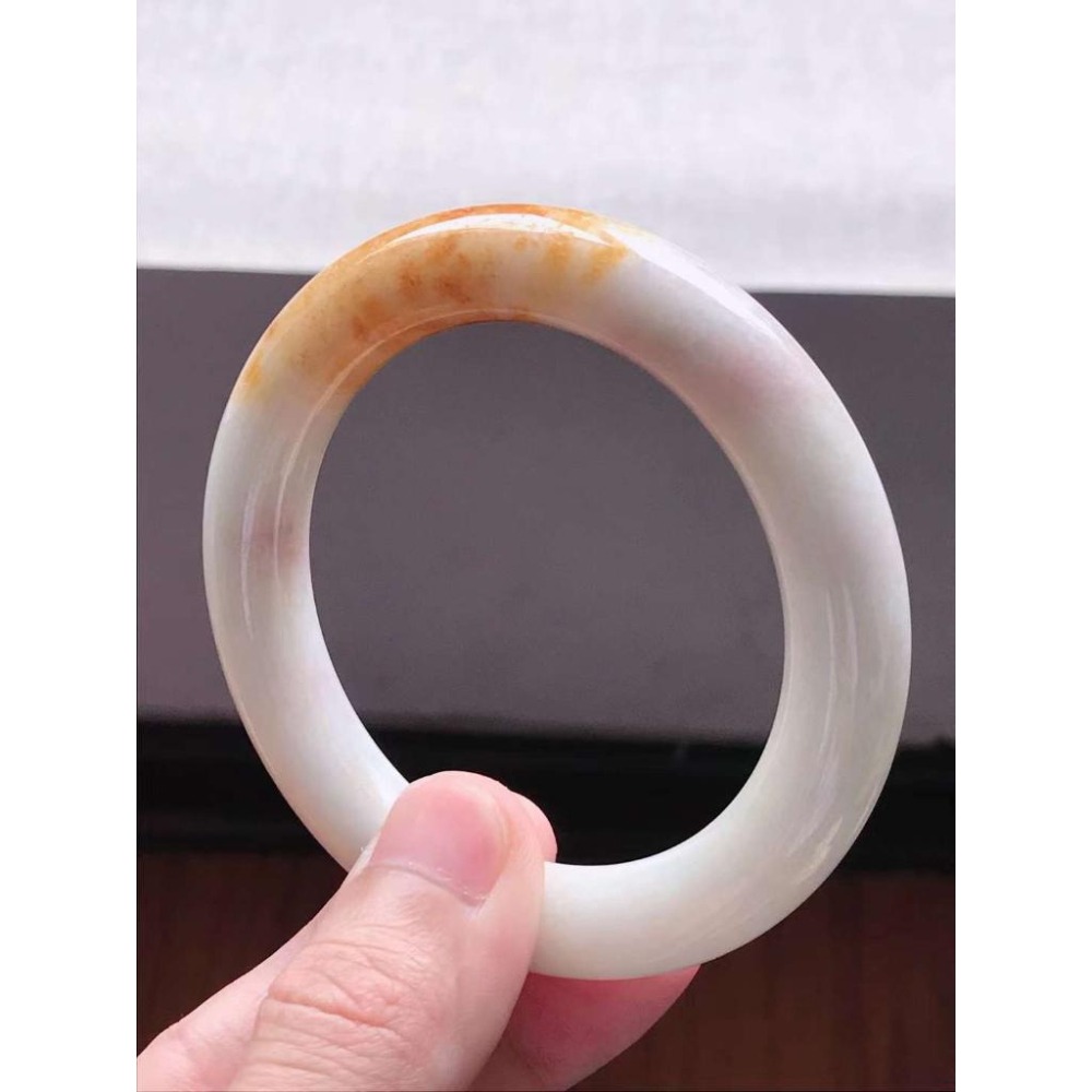 粉紫 淺綠 橘黃 三彩 圓條 圓骨 玉鐲 手鐲 褔鐲 -內徑約56.7mm__A038007-湧翠坊天然老坑A貨緬甸翡翠