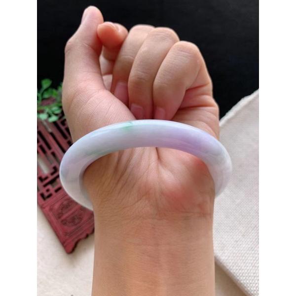 亮紫羅蘭多處飄陽綠春彩 圓條 圓骨玉鐲-內徑約55.5mm-A038033__湧翠坊天然老坑A貨緬甸翡翠手鐲-附證書