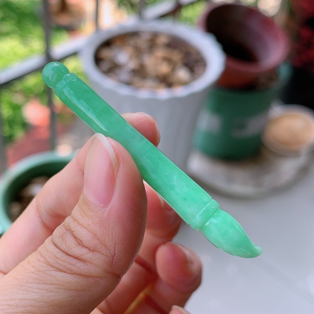 亮陽綠文昌筆、毛筆翡翠吊墜,非常適合做項鍊使用,吸晴、陽亮,幾乎無色差,除了商品照片及影片,顏色也可以參考第6張照片證書圖片。