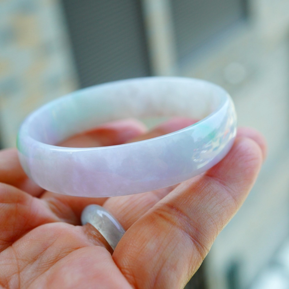 冰粉紫飄蘋果綠春彩公主玉鐲,所有照片及影片都在室外自然光下拍攝。