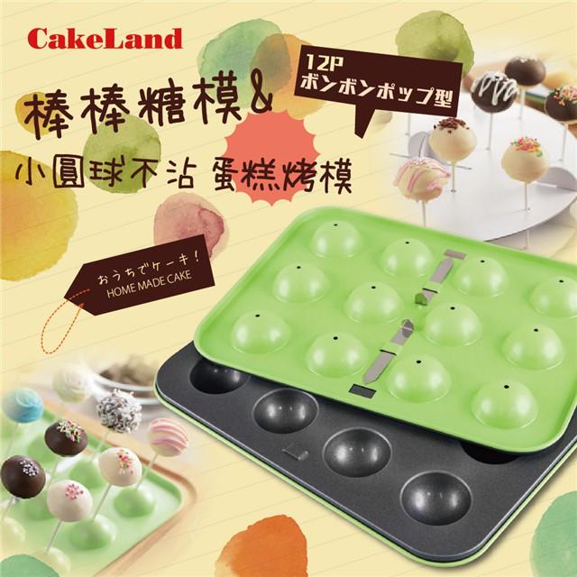 【日本CakeLand】12顆小圓球不沾蛋糕烤模&棒棒糖模-日本製