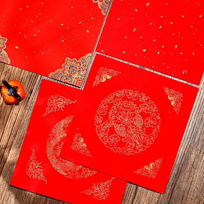 【金車屋 】單字/小春 灑金手工宣 春聯紙 單字 紅紙 春聯 萬年紅 17x17cm 100張 小春 春 福 滿 斗方