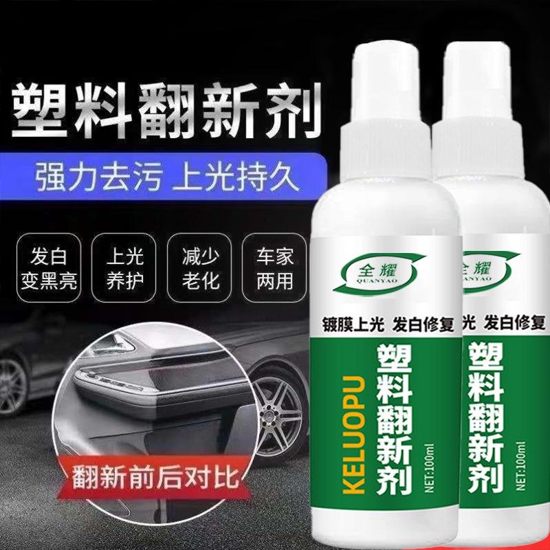 【商品說明】 ※商品名稱:塑料翻新劑 【商品特色】 ★塑料保養修護 ★專為塑料研發 ★防水不油膩 ★滋養塑料表面發白、老化、褪色 ★擦空調/擦洗衣機/擦車飾等 用途廣泛 【使用方法】 1. 將要翻新的位置,先用清水擦拭乾淨 2. 將適量的翻新劑噴在海綿,並均勻塗抹於塑料/橡膠上 3. 翻新後增量防護,等待自然吸收乾燥即可 【商品規格】 ◇商品功能:修護滋養汽車塑料老化/發白/褪色 ◇商品保存期:三年 ◇商品容量:100ml ◇商品包裝:罐裝 ◇商品注意事項: 1.請置於陰涼處保存 2.請勿放置在兒童可拿取到的地方 3.請勿對人體直噴 4.若不慎入眼,請用大量清水沖洗並就醫 {注意事項小提醒} 產品顏色可能因環境光線、電腦螢幕顯示等等有些微誤差,依實品為準唷! 尺寸的測量,可能因手工測量等因素有些微誤差,不影響使用!