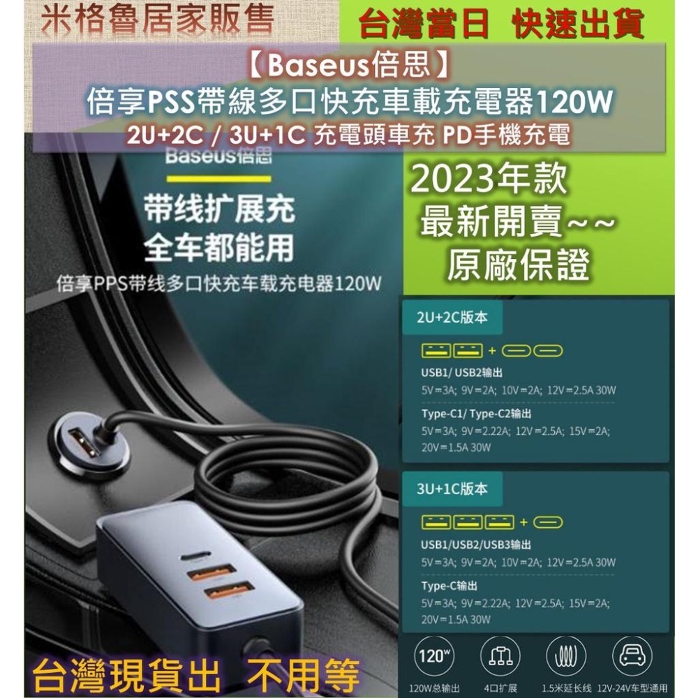 【Baseus倍思】倍享PSS帶線多口快充車載120W充電器 2U+2C / 3U+1C 充電頭車充 PD手機充電
