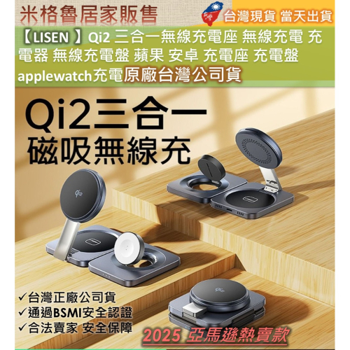 【Lisen台灣公司貨】 Qi2三合一無線充電座無線充電充電器無線充電盤蘋果安卓充電座充電盤 apple watch充電