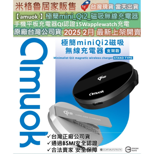 【amuok】【台灣公司貨】 極簡mini【Qi2】磁吸無線充電器 無線充電充電器無線充電盤蘋果安卓充電座充電盤 apple watch充電