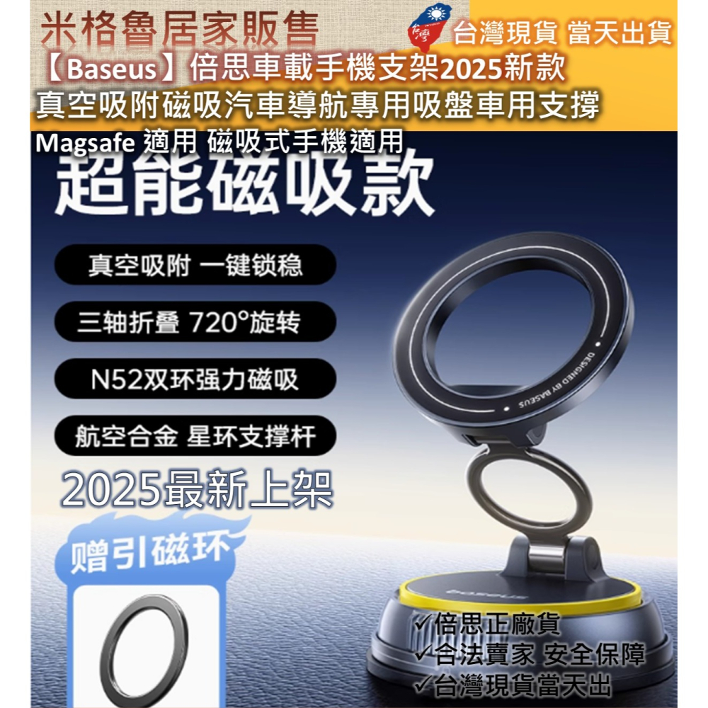 【Baseus】 倍思車載手機支架2025新款真空吸附磁吸汽車 導航專用吸盤車用支撐 Magsafe 適用磁吸式手機適用