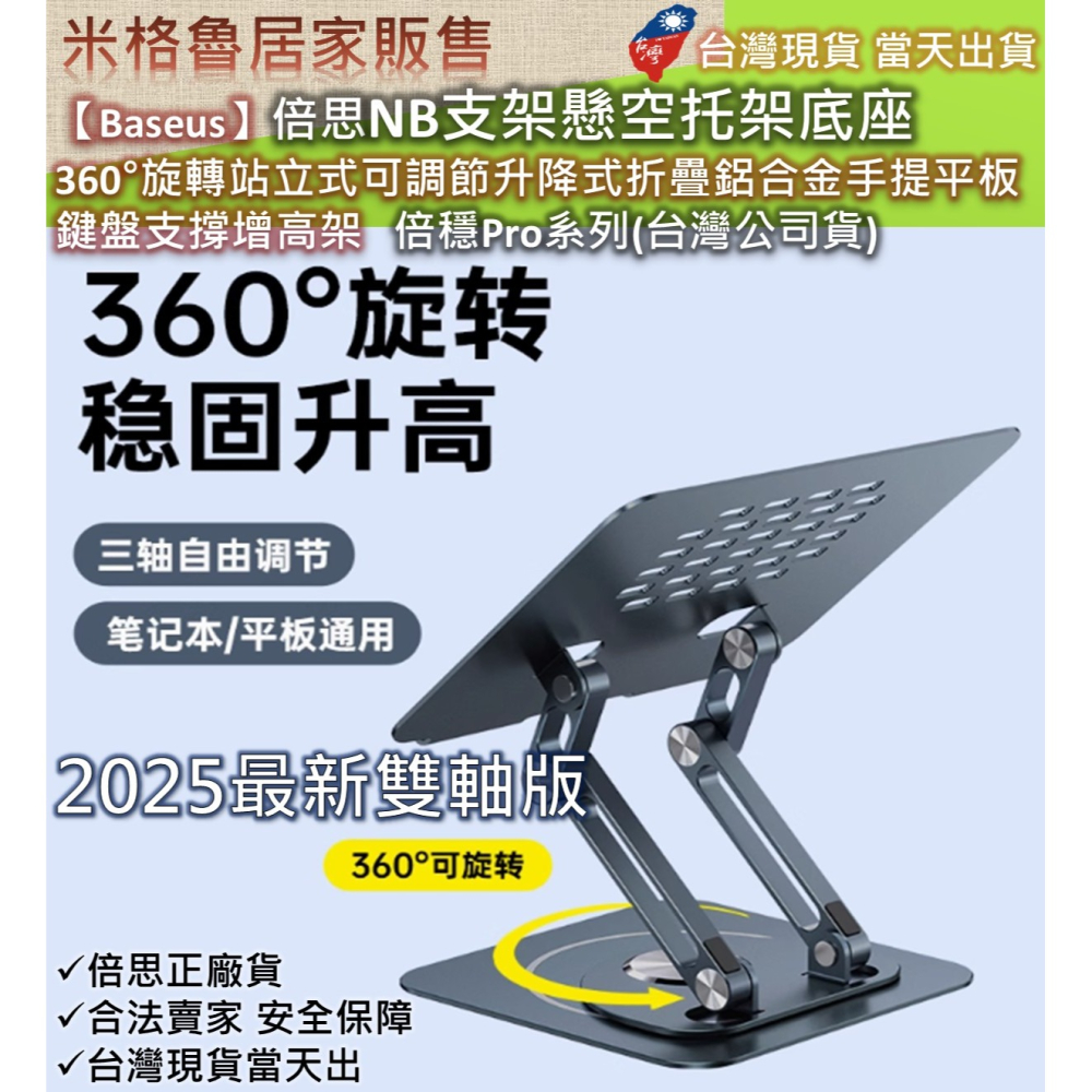 【Baseus】 倍思NB支架懸空托架底座 360°旋轉站立式可調節升降式折疊鋁合金手提平板鍵盤支撐增高架 倍穩Pro系列雙軸版(台灣公司貨)