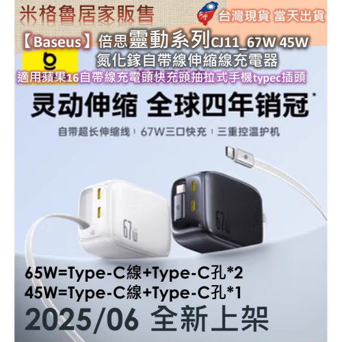 【Baseus】 倍思靈動系列CJ11_67W&45W 氮化鎵自帶線伸縮充電頭/快充頭