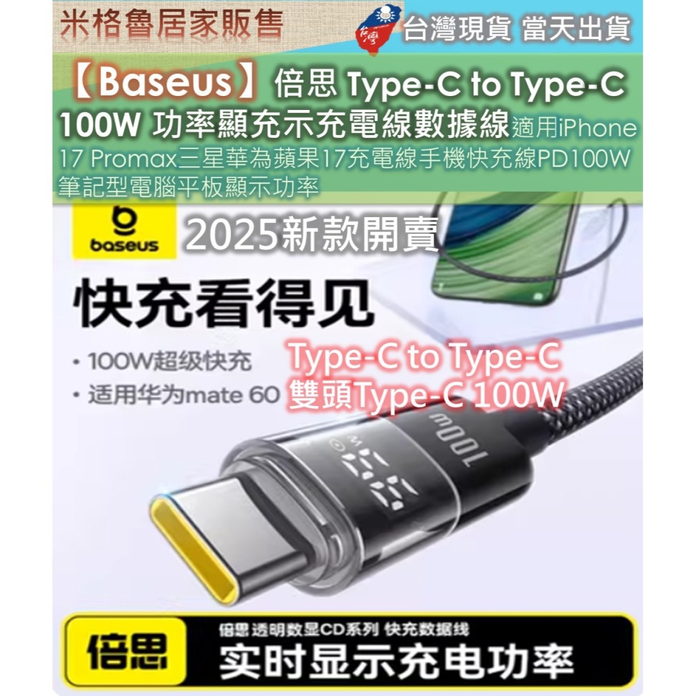 【Baseus】倍思 Type-C to Type-C 100W 功率顯充示充電線數據線