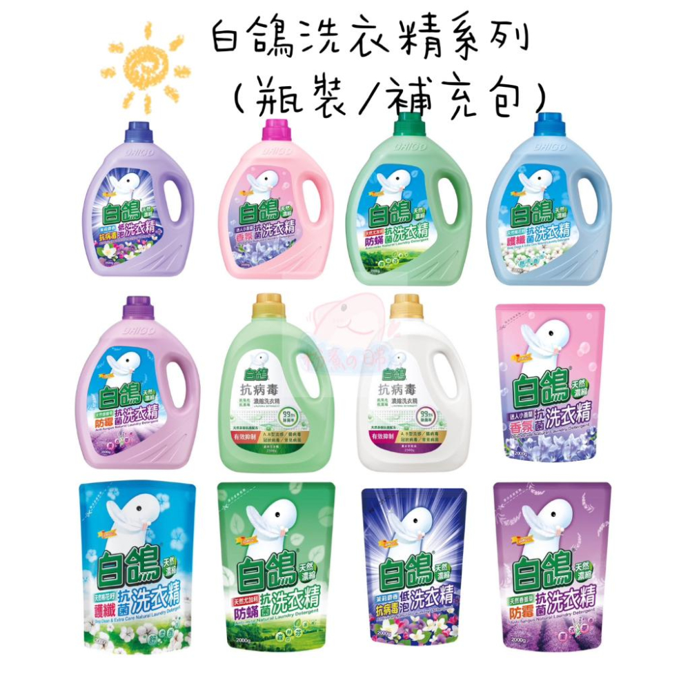 白鴿 天然濃縮抗菌洗衣精 瓶裝 補充包 抗病毒洗衣精 天然手洗精 尤加利防螨 棉花籽護纖 小蒼蘭 茉莉麝香 薰衣草