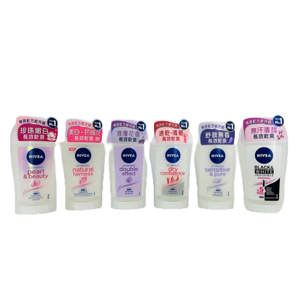 廠商不定時會更換包裝,內容物皆相同,介意者勿下單唷 妮維雅止汗爽身乳膏 - 乾適活力男士用 全新升級「DryPlus」雙重止汗配方,能加強減少肌膚上過多的汗水,去除體味,止汗效果與持久性加倍提升! 並添加礦物質成份,快速達到乾爽效果。魅力麝香調,給你全天候的極速乾爽與舒適。 結合妮維雅最溫和的呵護與止汗防護 長效止汗、極速乾爽效果 不含酒精成分 無添加色素 經肌膚刺激性試驗 香調:魅力型男麝香調 妮維雅止汗爽身乳膏 - 極限動力男士用 全新升級的長效乾爽止汗配方,能降低肌膚上過多的汗水,去除體味,止汗效果更持久! 添加「含銀配方」,提升制臭效果,減少汗味及體味產生。 淡雅木質香調,給你全天候超越極限的乾爽動力。 結合妮維雅最溫和的呵護及止汗防護 • 長效止汗乾爽效果 • 不含酒精成分 • 無添加色素 • 經肌膚刺激性試驗 香調: 淡雅木質香調 妮維雅止汗爽身乳膏 - 美白系列 全新升級的長效乾爽止汗配方,能降低肌膚上過多的汗水,去除體味,止汗效果更持久! 添加「維他命C珍珠美 白修護配方」抑制腋下黑色素形成,快速改善因除毛造成的肌膚暗沉, 有效美 白腋下肌膚,同時緊緻毛孔,讓腋下肌膚更加勻白光滑。 清新花果香氛,給你全天候勻白明亮的乾爽呵護。 結合妮維雅最溫和的呵護及止汗防護 • 長效止汗乾爽效果 • 美白腋下肌膚 • 不含酒 精成分 • 無添加色素及防腐劑 • 經肌膚刺激性試驗 香調:清新花果香氛 妮維雅止汗爽身乳膏 - 乾適活力 全新升級的「DryPlus」雙重止汗配方,能加強減少肌膚上過多的汗水,去除體味,止汗效果與持久性加倍提升! 並添加礦物質成份,快速達到乾爽效果。清新淡雅香氛,給妳全天候的自信乾爽與舒適。 結合妮維雅最溫和的呵護與止汗防護 • 長效止汗、持久乾爽效果 • 不含酒 精成分 • 無添加色素 • 經肌膚刺激性試驗 香調:清新淡雅香氛 妮維雅止汗爽身乳膏 - 高效柔滑 全新升級的長效乾爽止汗配方,能降低肌膚上過多的汗水、去除體味,止汗效果更持久! 並添加酪梨油精萃,加倍柔嫩除毛後粗糙的腋下肌膚。 淡雅的紫羅蘭浪漫香氛,給你全天候如絲緞般柔滑的清爽呵護。 結合妮維雅最溫和的呵護及止汗防護 • 長效止汗乾爽效果 • 不含酒 精成分 • 無添加色素及防腐劑 • 經肌膚刺激性試驗 香調:淡雅的紫羅蘭浪漫香氛 妮維雅止汗爽身乳膏 - 無印乾爽 全新升級的長效乾爽止汗配方,能降低肌膚上過多的汗水,去除體味,止汗效果更持久! 且使用後不殘留白印在衣物上,並減少黃色汗漬。甜蜜花果香氛,給妳全天候安心舒適的乾爽呵護。 結合妮維雅最溫和的呵護及止汗防護 • 獨特無印乾爽止汗效果 • 不殘留白印並減少黃色汗漬 • 不含酒精成分 • 無添加色素及防腐劑 • 經肌膚刺激性試驗 香調:甜蜜花果香氛 妮維雅止汗爽身乳膏 - 珍珠煥彩 長效乾爽止汗爽配方,能降低肌膚上過多的汗水,去除體味,止汗效果持久!添加「水解珍珠」及酪梨油護膚因子,能淨白勻色、滋養潤澤腋下肌膚。 甜美沐浴香氛,給妳全天候的淨白煥彩的乾爽呵護。 結合妮維雅最溫和的呵護及止汗防護 • 長效乾爽止汗效果 • 淨白潤澤腋下肌膚 • 不含酒精成分 • 無添加色素及防腐劑 • 經肌膚刺激性試驗 香調:甜美沐浴香氛 產地:德國 有效期限:30個月 貨源:台灣原廠公司貨 規格:40ml