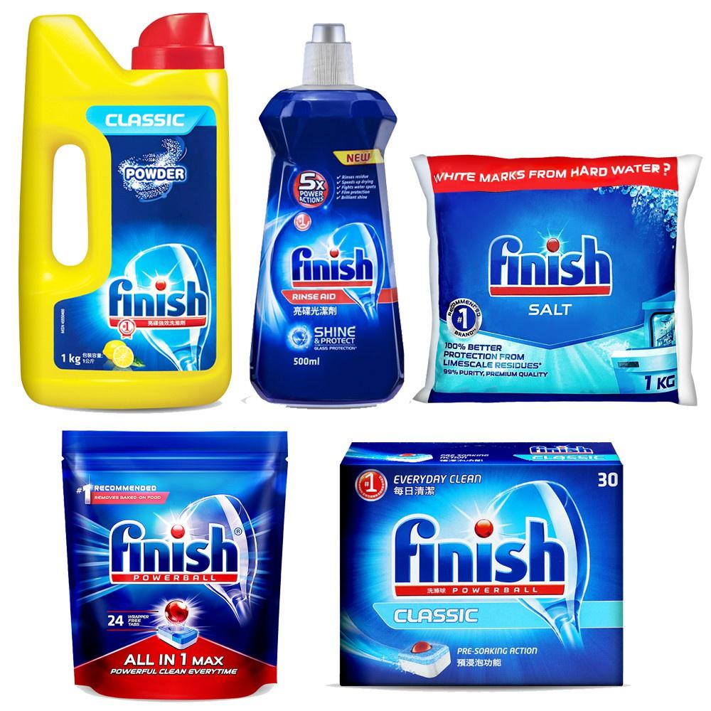 Finish 亮碟 洗碗機強力洗滌粉劑1kg/光潔潤乾劑500ml/軟化鹽1kg/洗滌球30入/24入